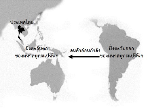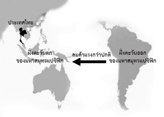 จึงทำให้น้ำผิวหน้ามหาสมุทรฝั่งตะวันตกมีอุณหภูมิสูงกว่าปกติ